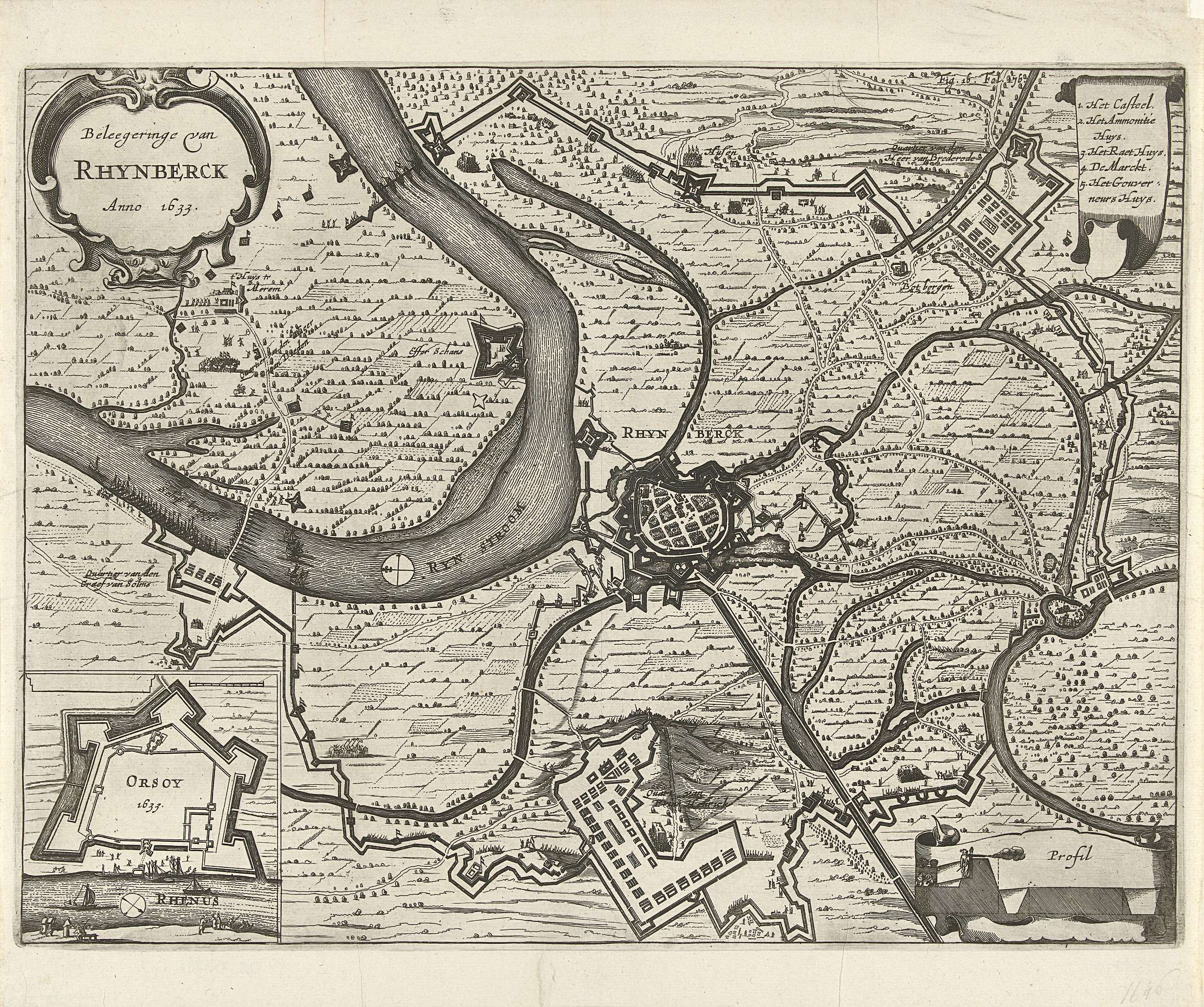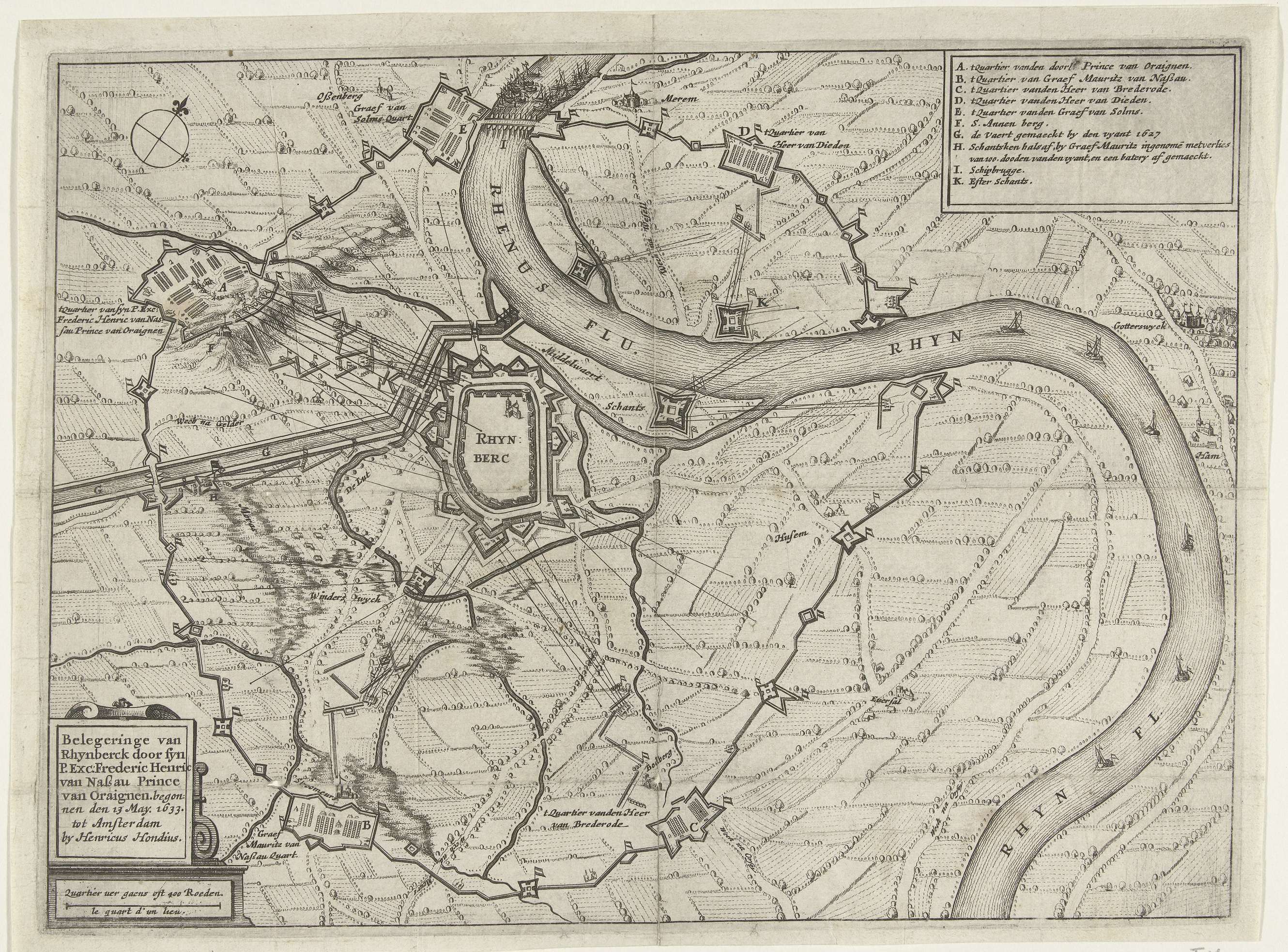 Kaart van het beleg van Rijnberg, 1633