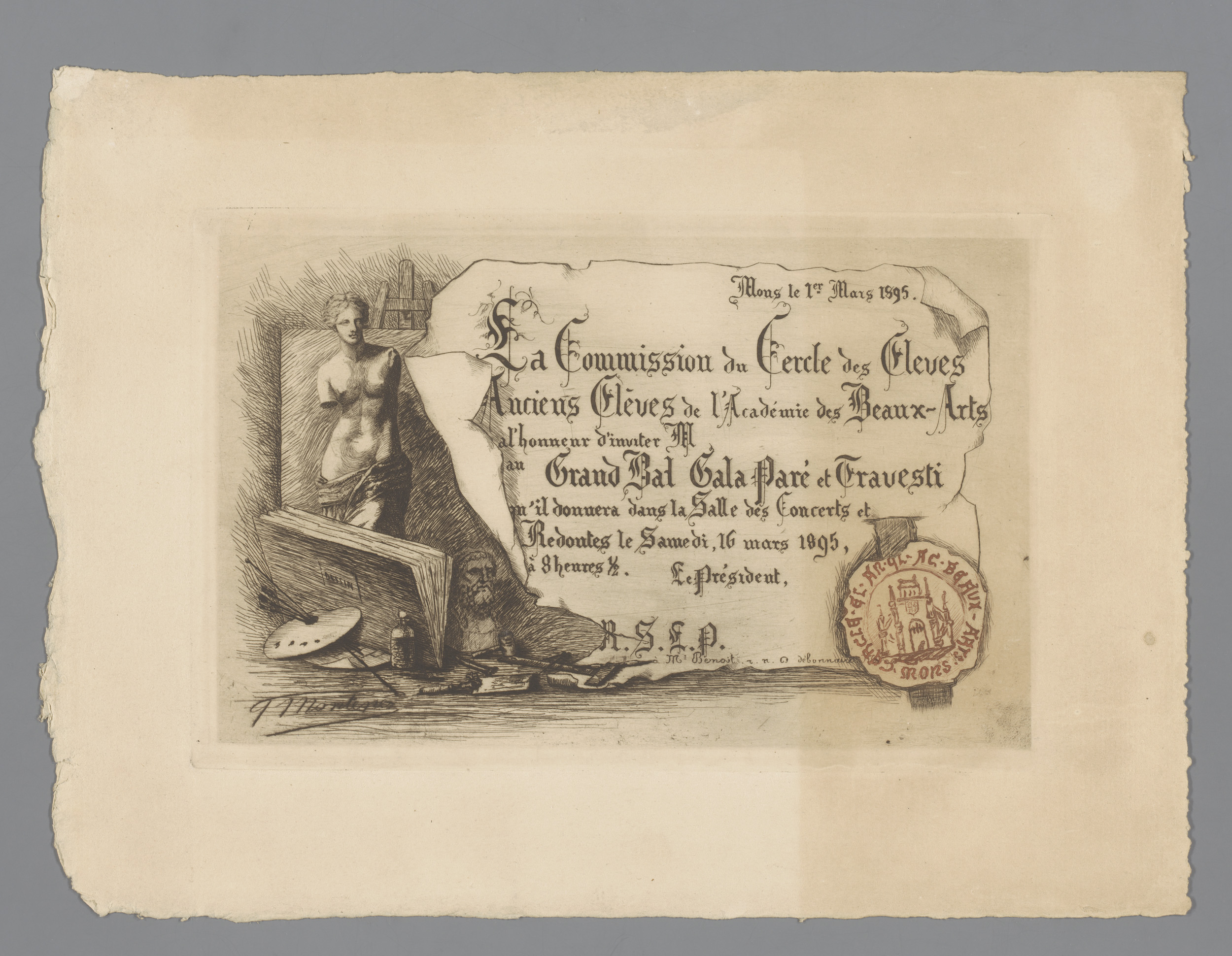 Uitnodiging voor een bal gedecoreerd met kunstenaars...