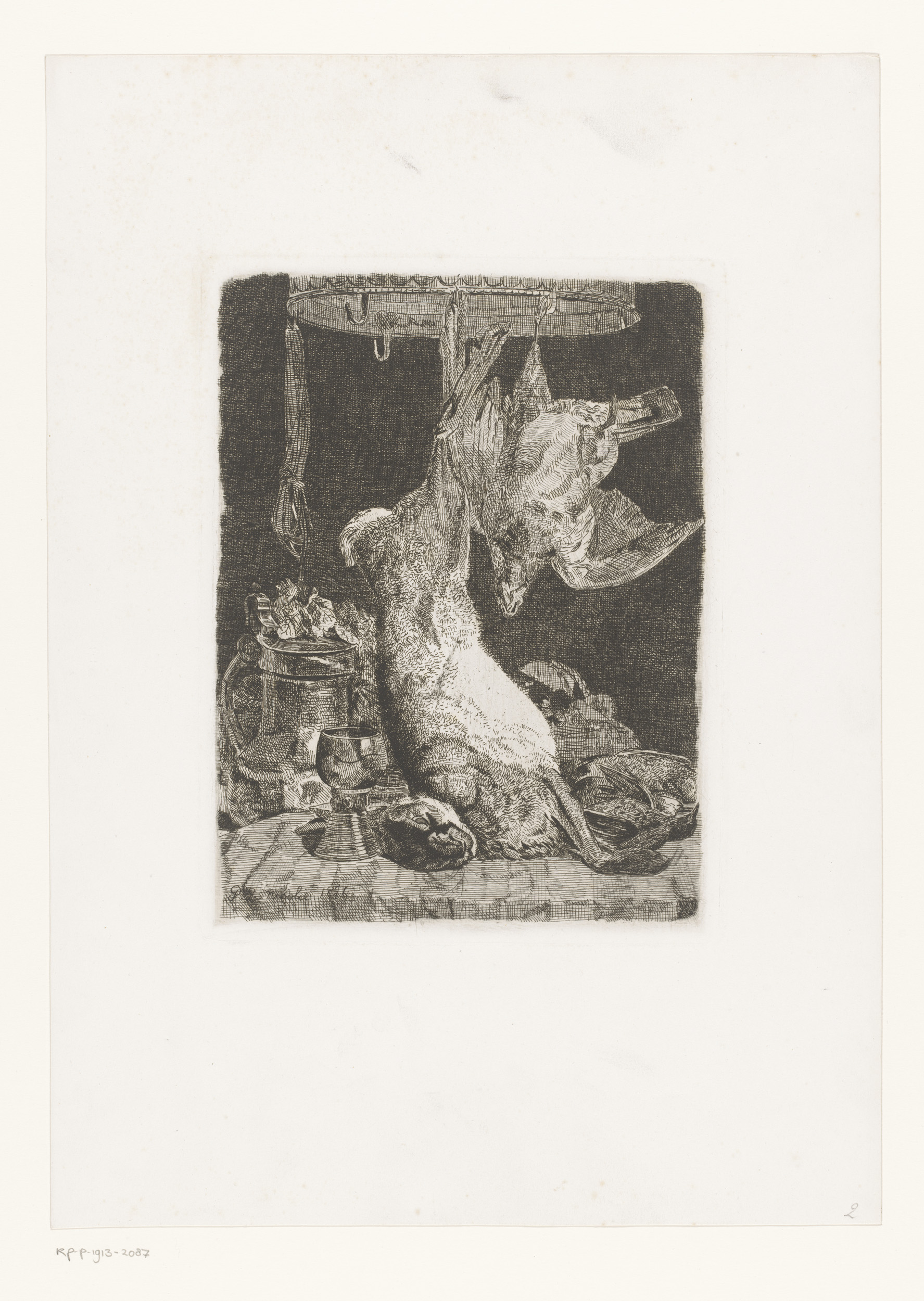 Stilleven met wild en twee honden