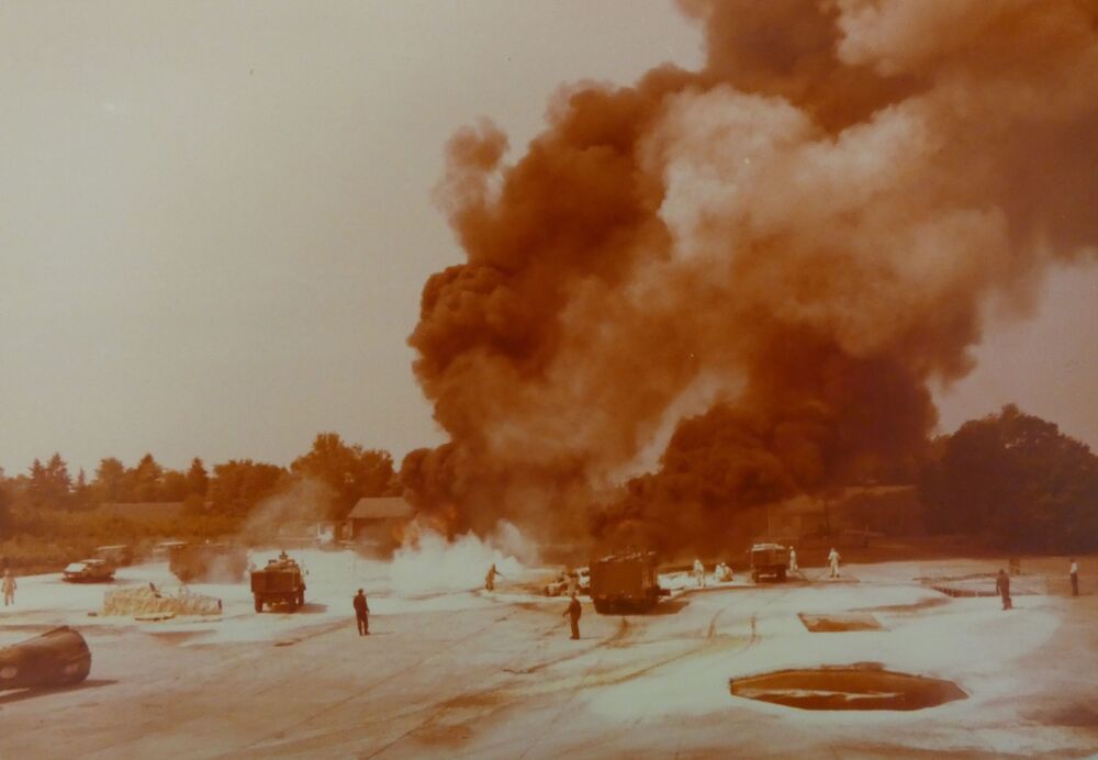 Grote blusoefening met crashtenders, o.a. Unimog 404...