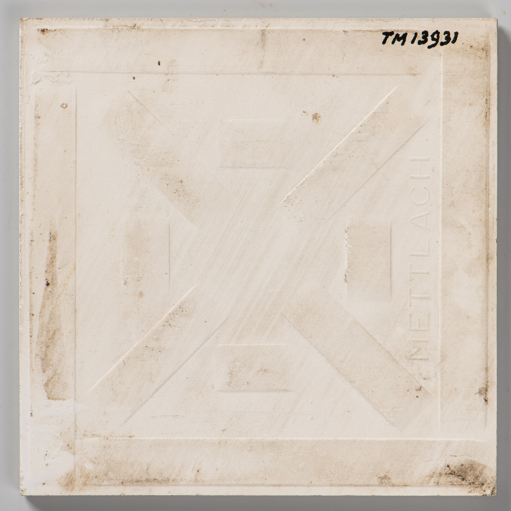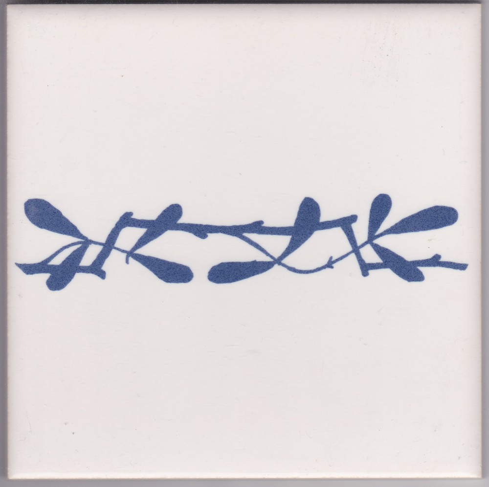 Tegel in zeefdruk, met voorstelling: decor Rowan, ve...