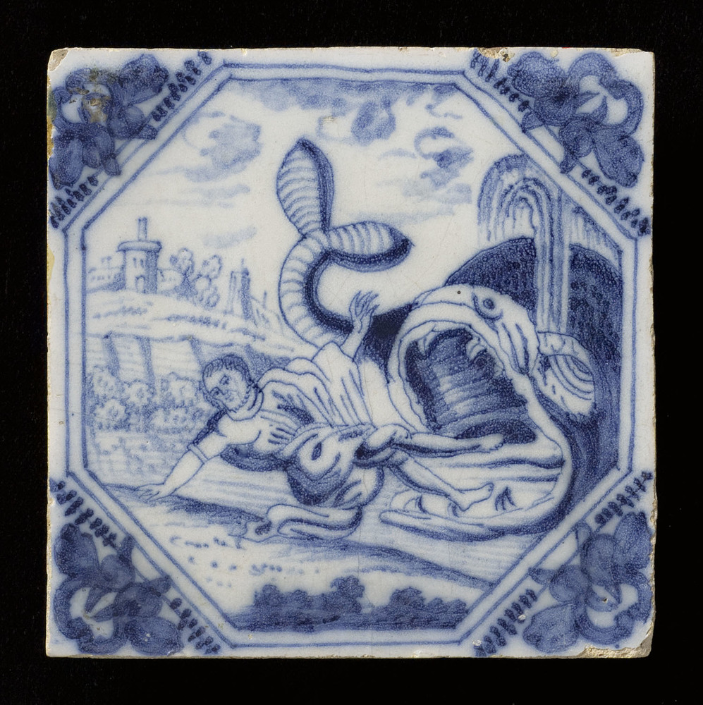 Tegel van keramiek met tinglazuur, voorstellende: Jo...