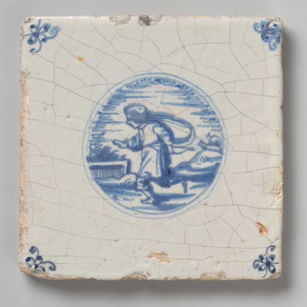 tegel van aardewerk met tinglazuur, voorstellende: h...