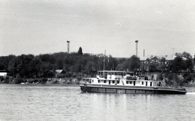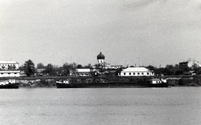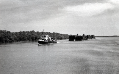 Schip op de Donau in de buurt van Reni, Oekraïne, 19...