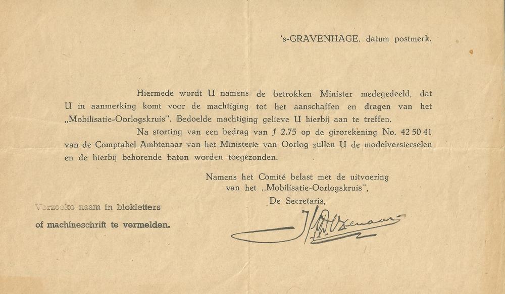 Machtiging tot het aanschaffen en dragen van het Mob...