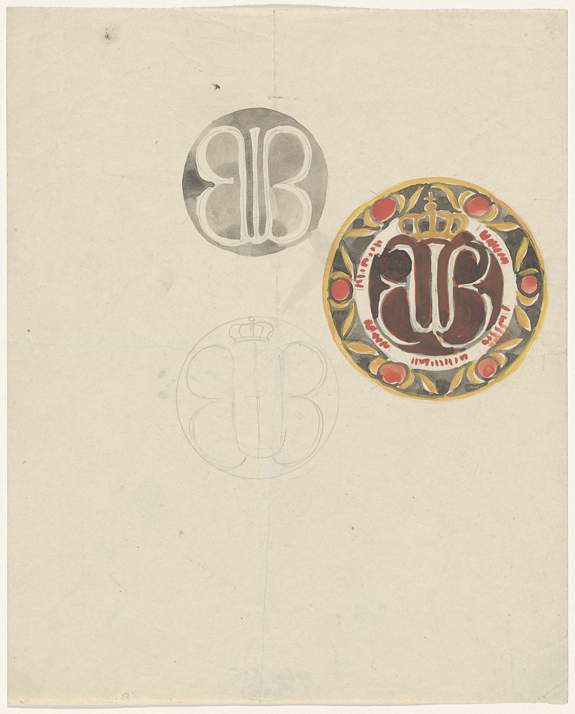 Ontwerp voor een bord met gekroonde W en het jaartal...