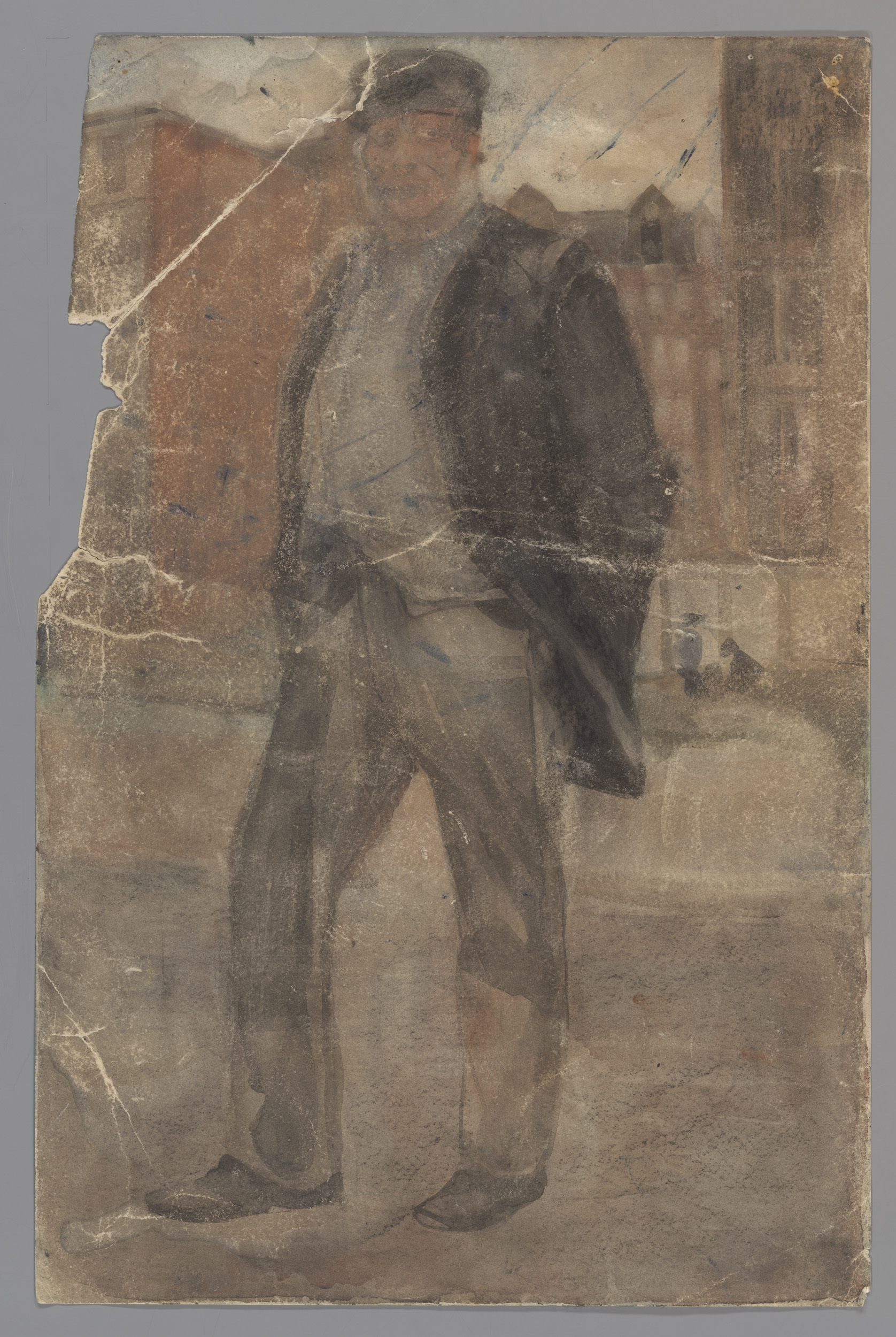 Staande man met stijve pet
