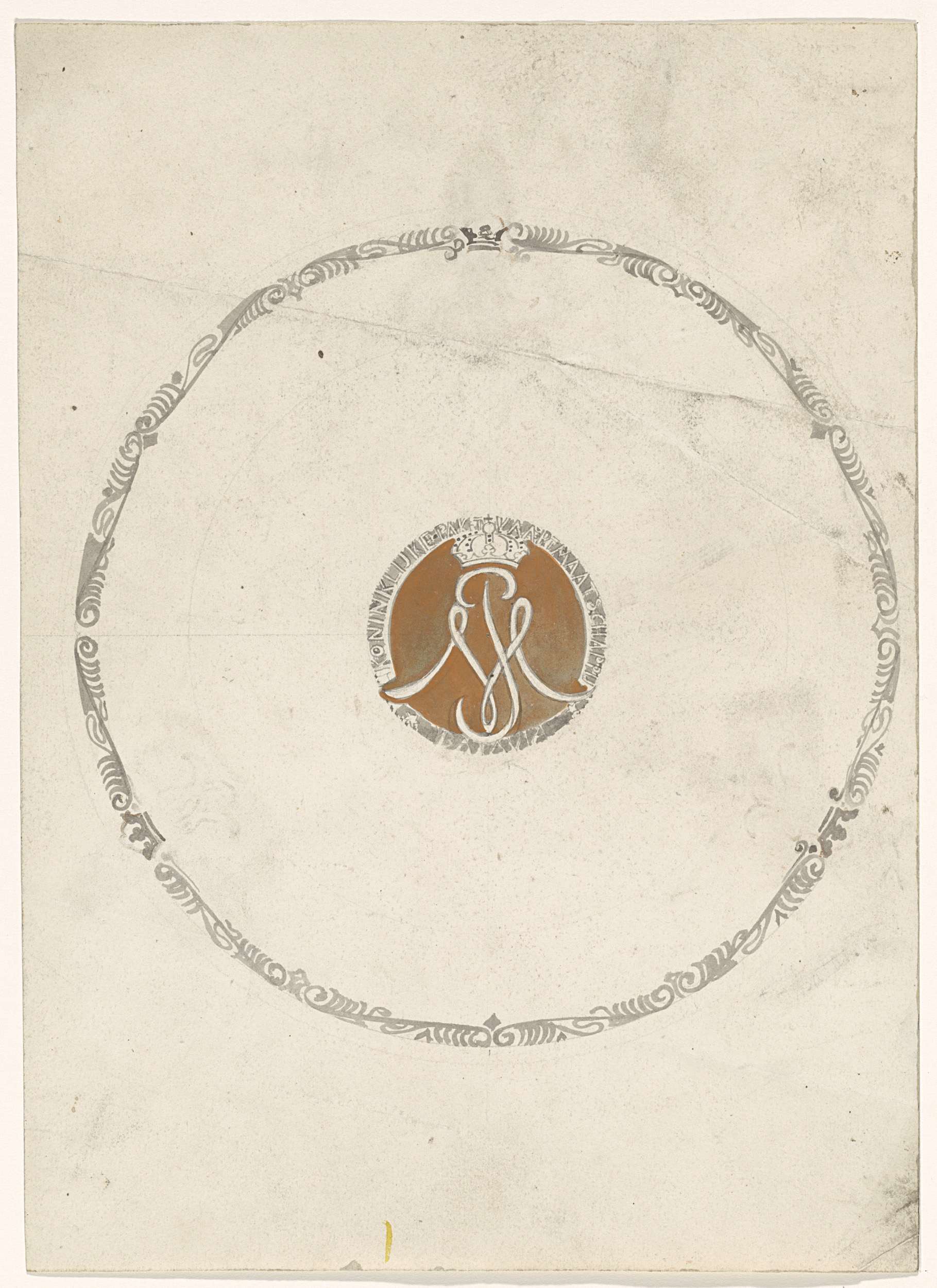 Ontwerp voor een bord met kroon en monogram