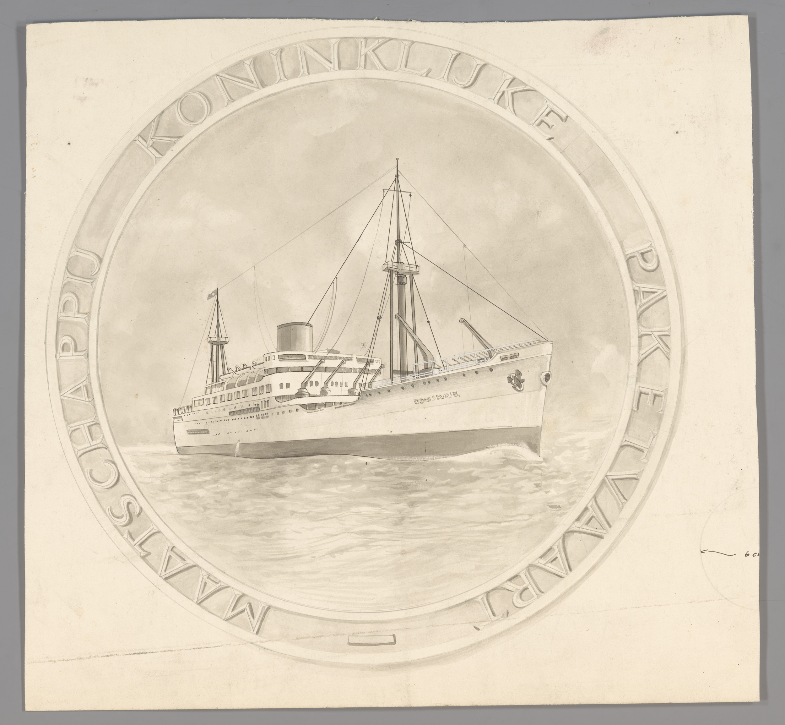 Ontwerp voor een bord voor de Koninklijke Paketvaart...