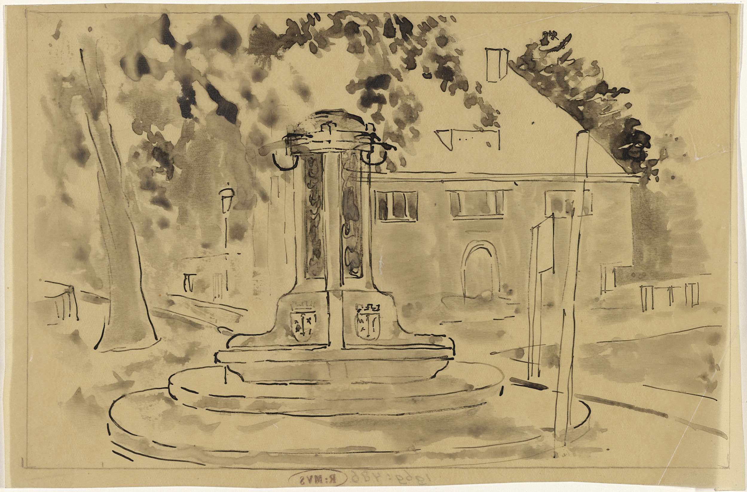 Ontwerp voor een gedenkbord met W en een wapenschild