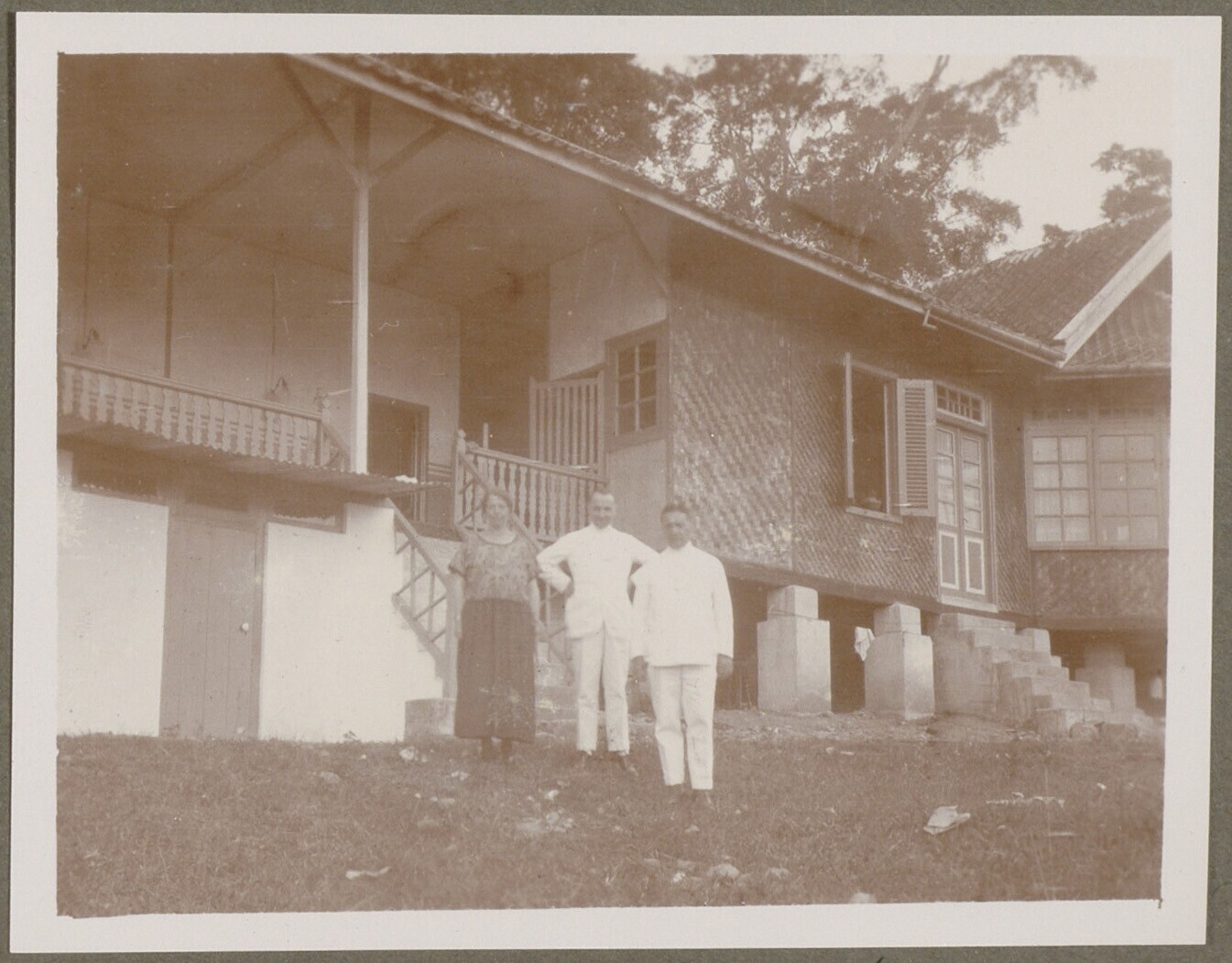 Gezelschap poseert voor paviljoen