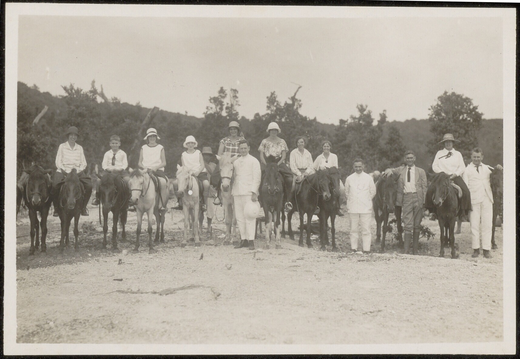 Gezelschap poseert met paarden