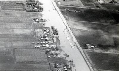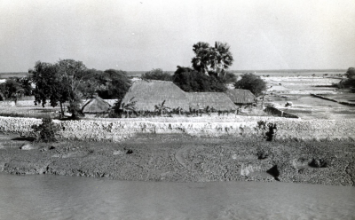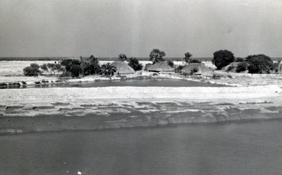 Bedijkt gebied in India langs de oevers van een rivi...