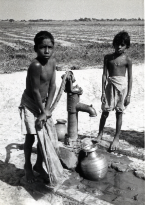 Kinderen in India bij een waterpomp, waarschijnlijk ...