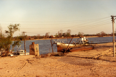 Rivier in Argentinië. Aan de oever een schip.