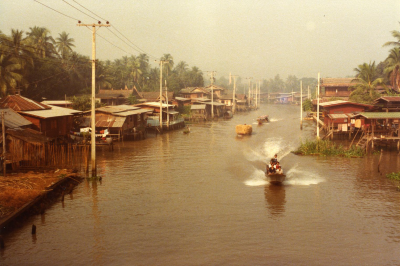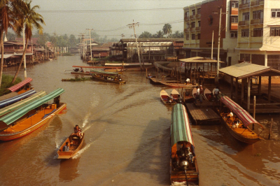 Kanaal met bootjes in Thailand, waarschijnlijk in de...