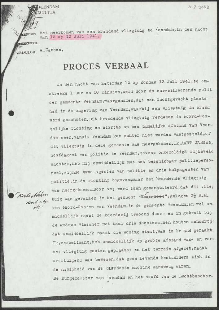 Proces-verbaal Gemeente-Politie Veendam over het nee...
