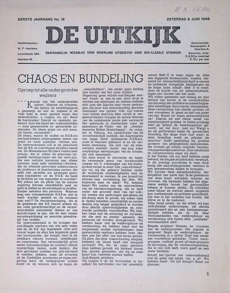 De Uitkijk, 9 juni 1945.