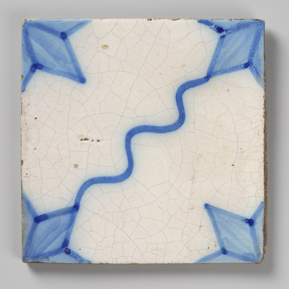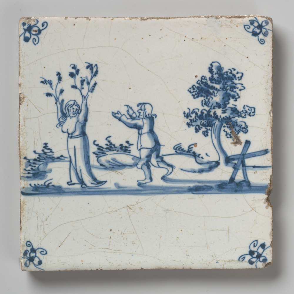 tegel van aardewerk met tinglazuur, voorstellende: A...