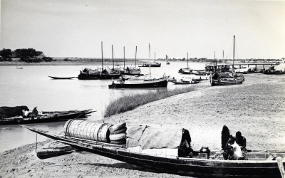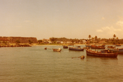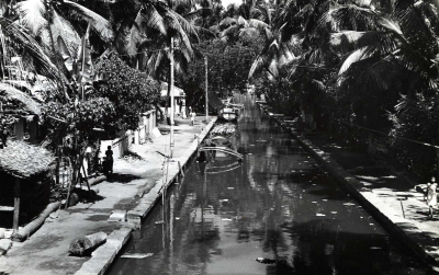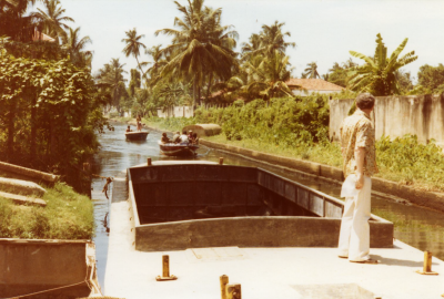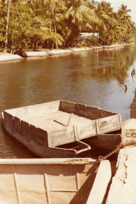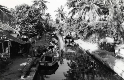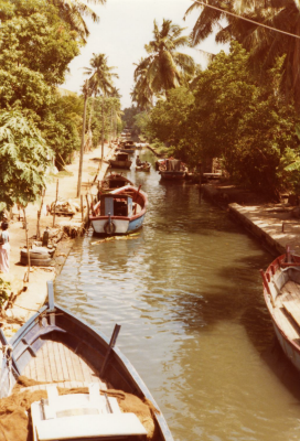 Kanaal met bootjes in Sri Lanka, juli 1976.