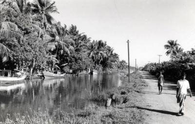 Kanaal in Sri Lanka, 1979. Langs de kant bootjes.