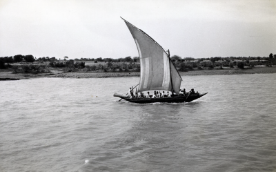 Zeilbootje op een rivier in India, vermoedelijk in h...