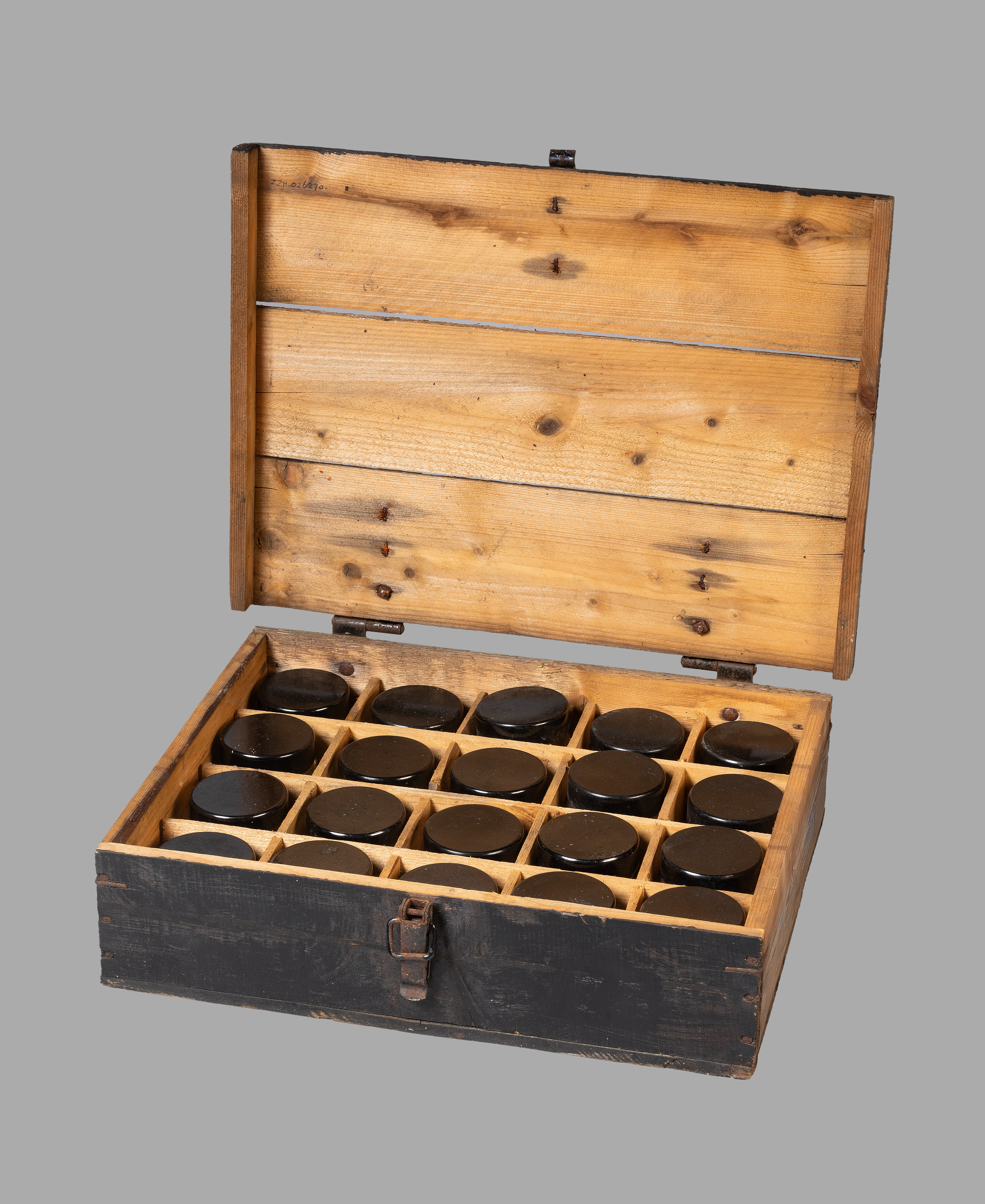 Kist Zuiderzeewerken - ZZW Urk, met 18 monsterpotjes