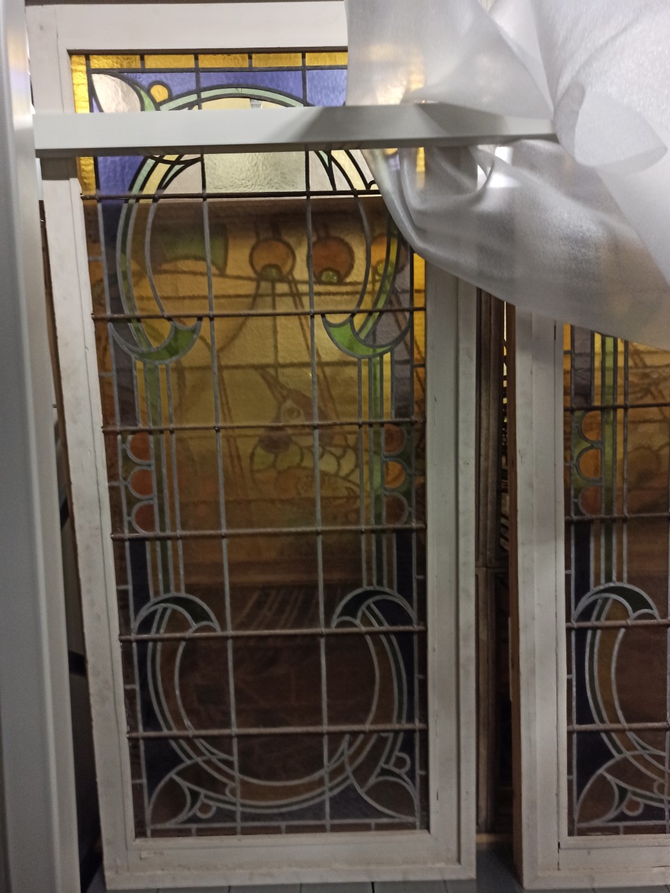Glas-in-looddeur met grote abstracte vormen afkomsti...