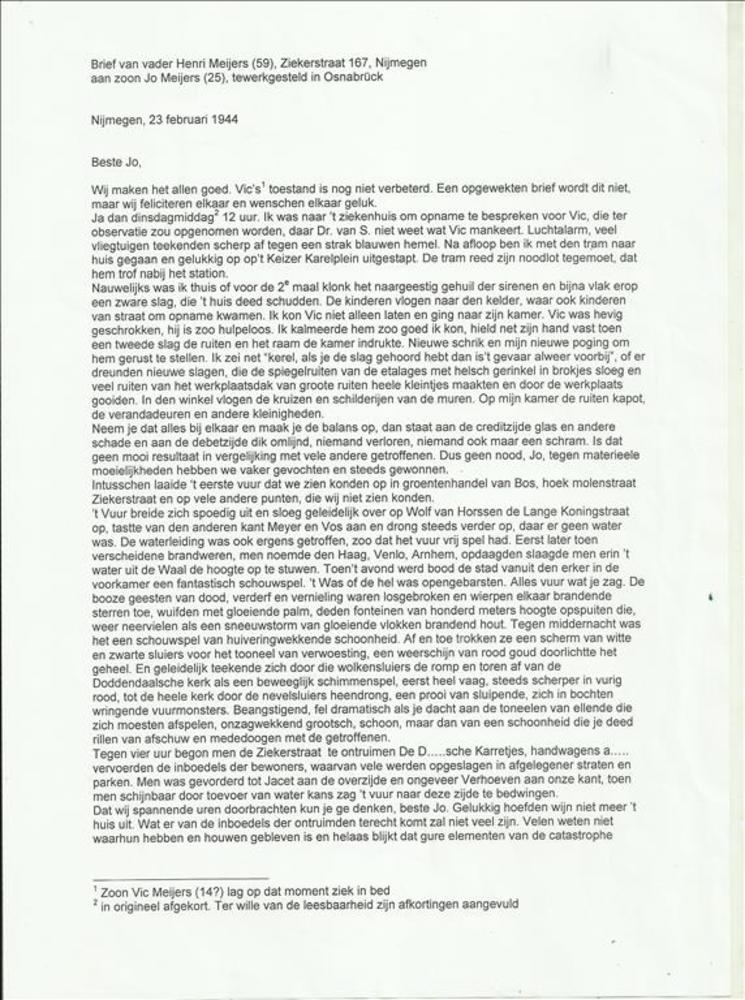 Brief van vader Henri Meijers ( 59 ) Ziekenstraat 16...