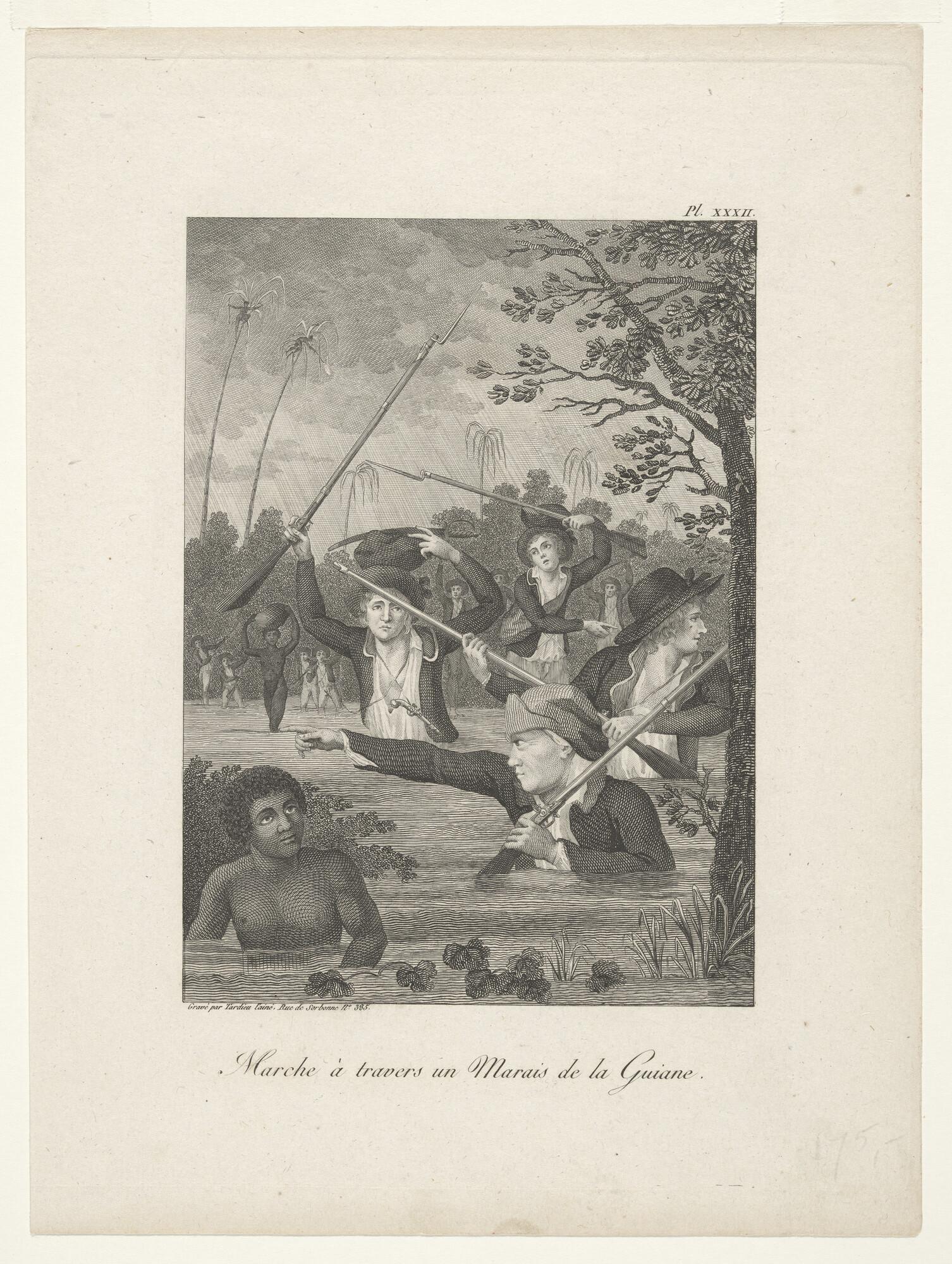 Soldaten trekken door een moeras in Guyana