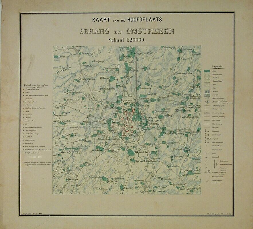 Kaart van de hoofdplaats Serang en omstreken