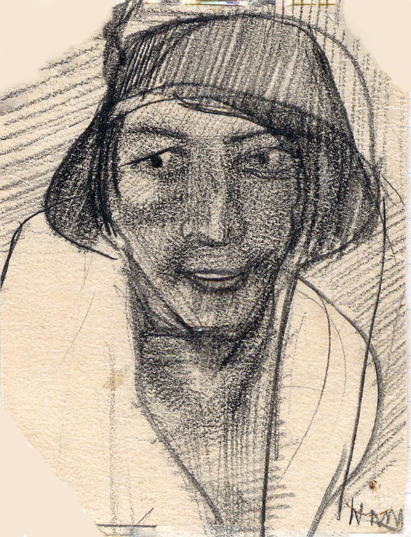 houtskool, krijt, rood krijt, zwart krijt, papier, beige papier (2)
