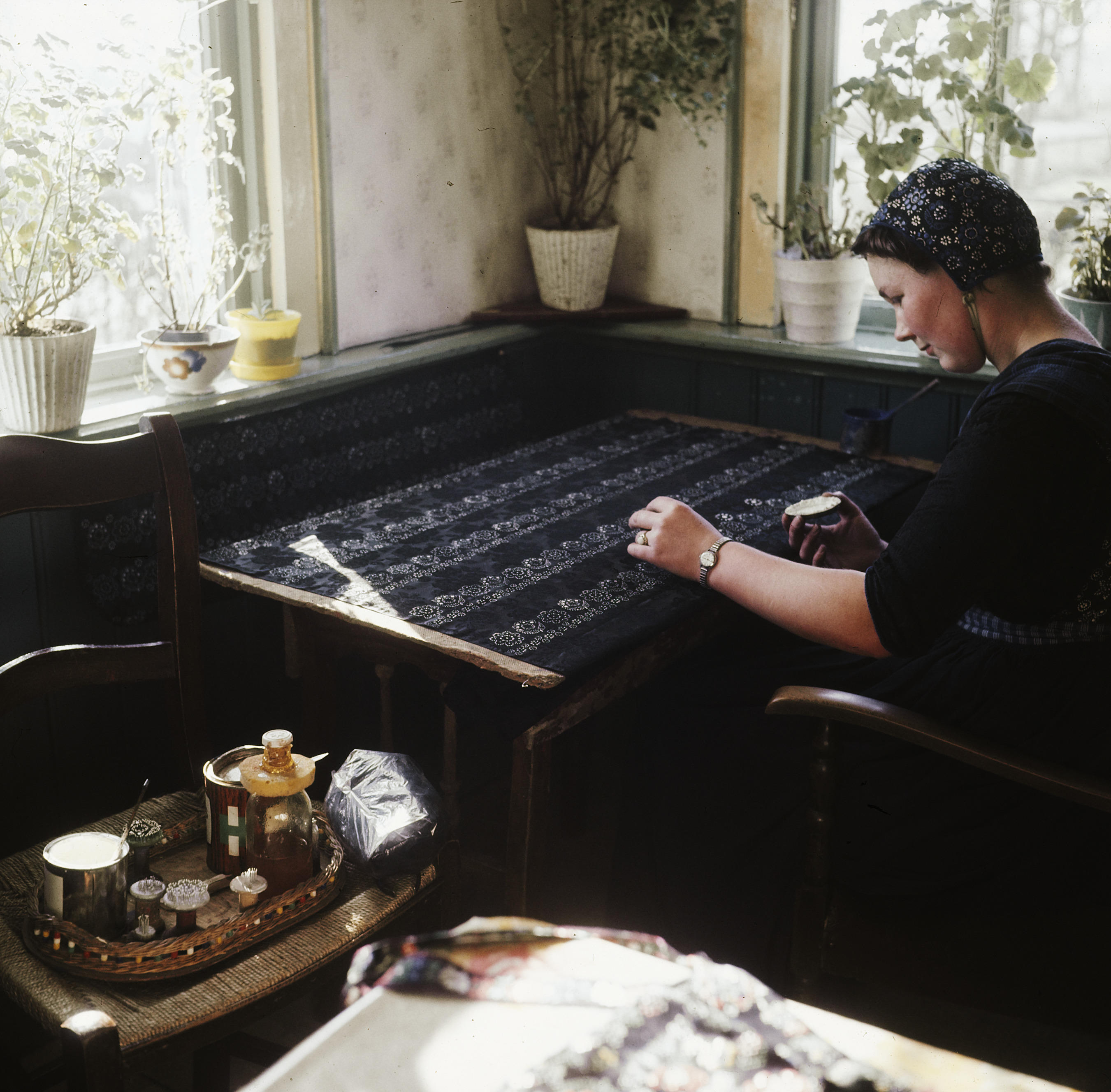 Drukster Jantje Vos aan het werk, Staphorst, 1964–19...