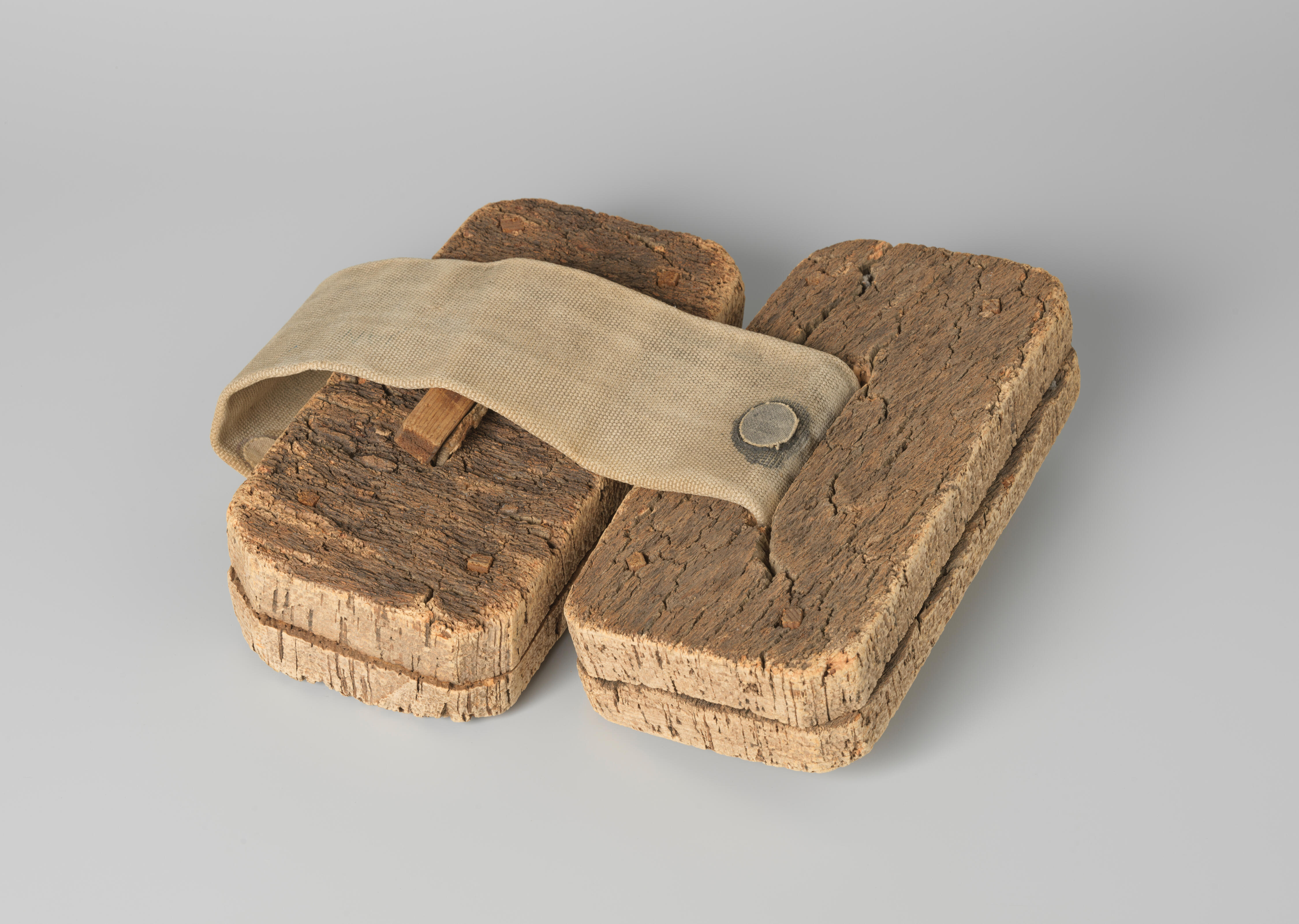Geweven band met twee kurken, gebruikt als drijfmidd...