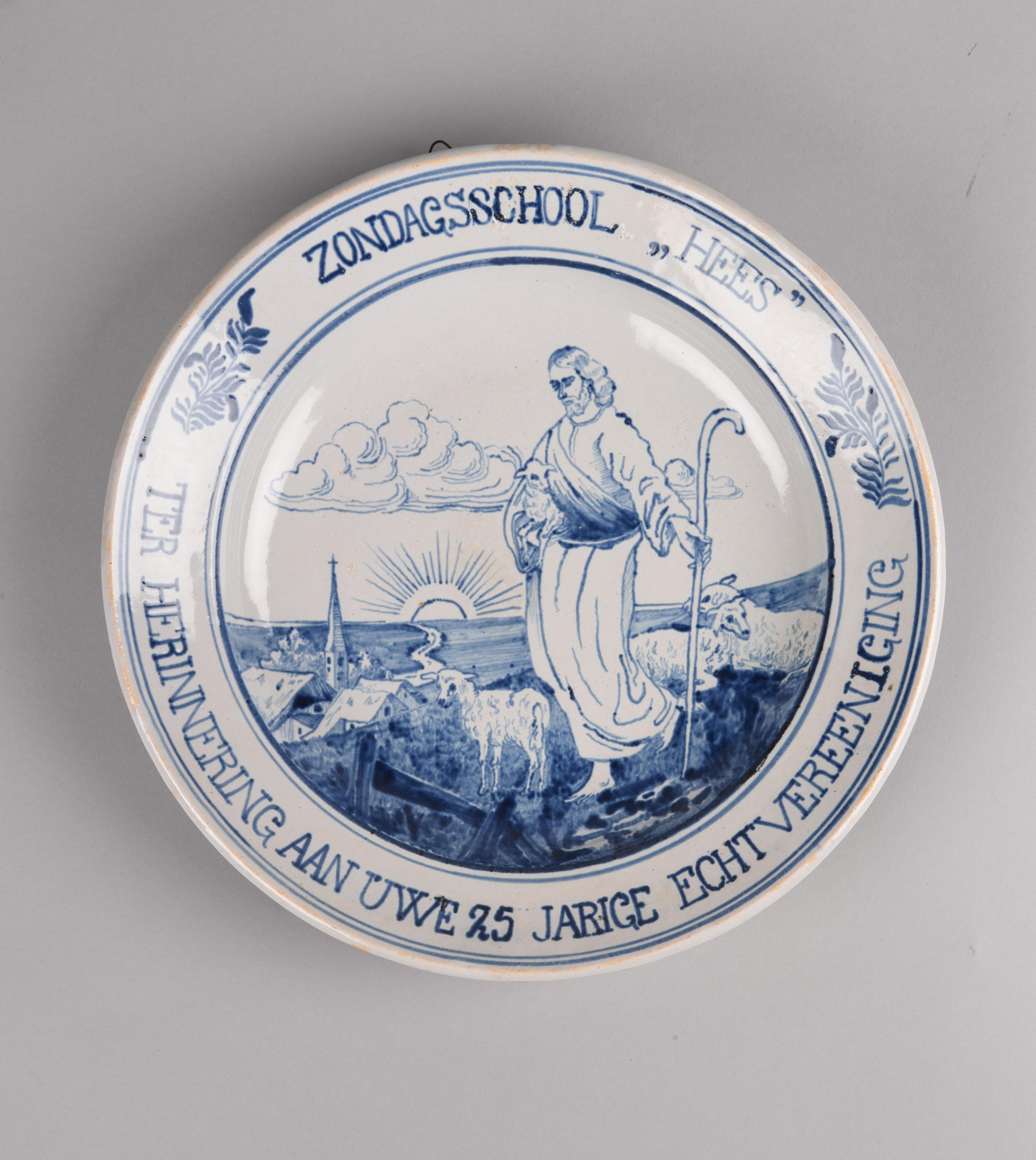 Sierbord met Jezus als Goede Herder en de opkomende ...