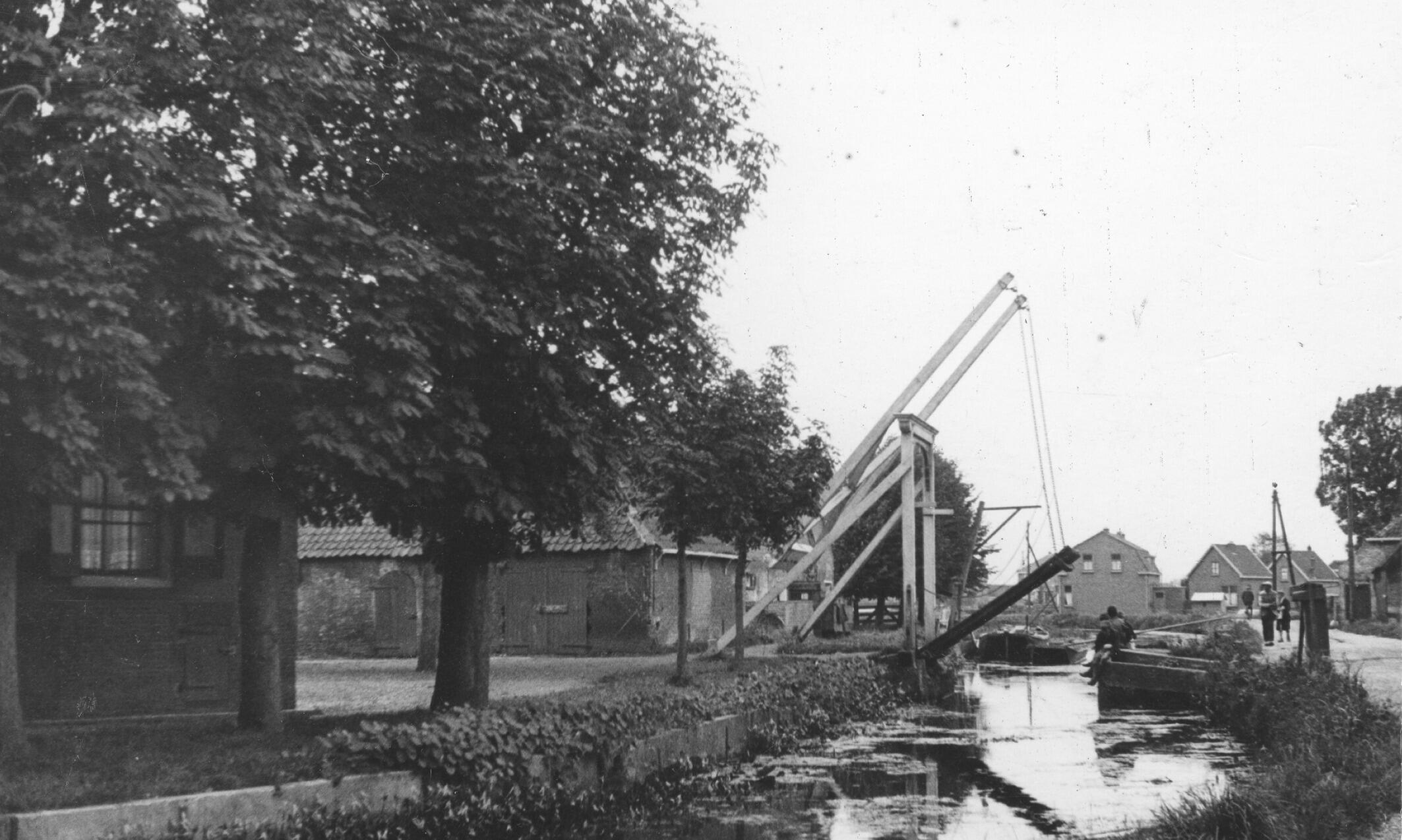 Vaart met ophaalbrug, Kethel, 1936 (zwart-wit foto)