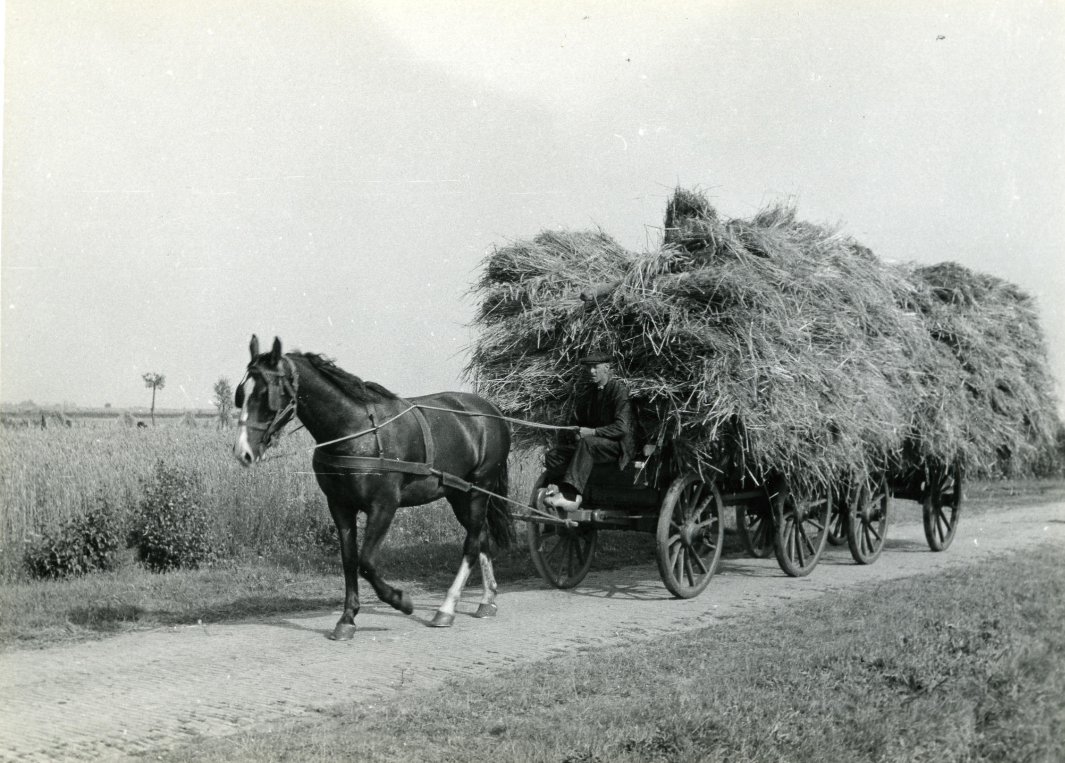 Transport van rogge, Staphorst, 1944 (zwart-wit foto)
