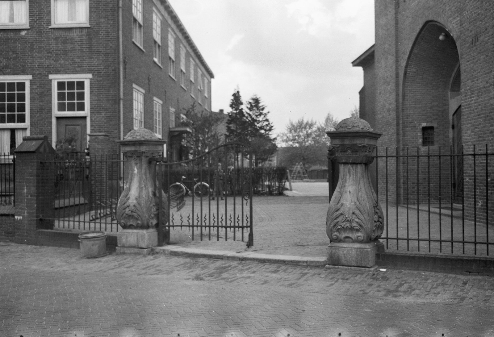 Hekwerk met hekpijlers naast de ingang van de R.K. S...