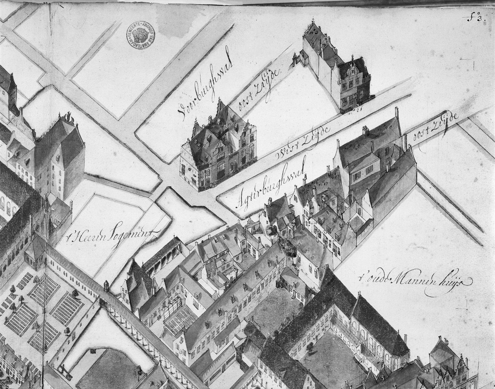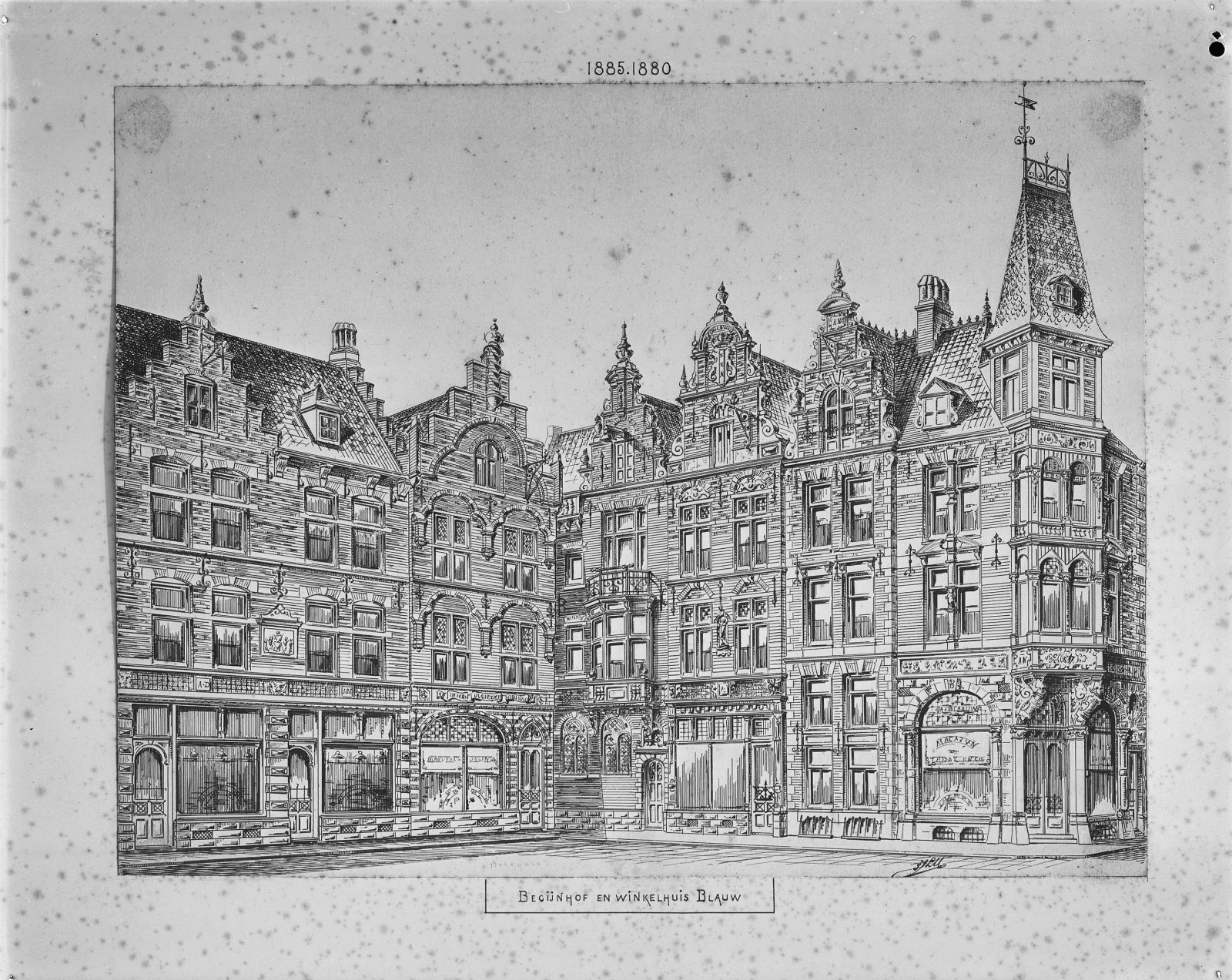 Tekening van Begijnehof en Winkelhuis Blauw