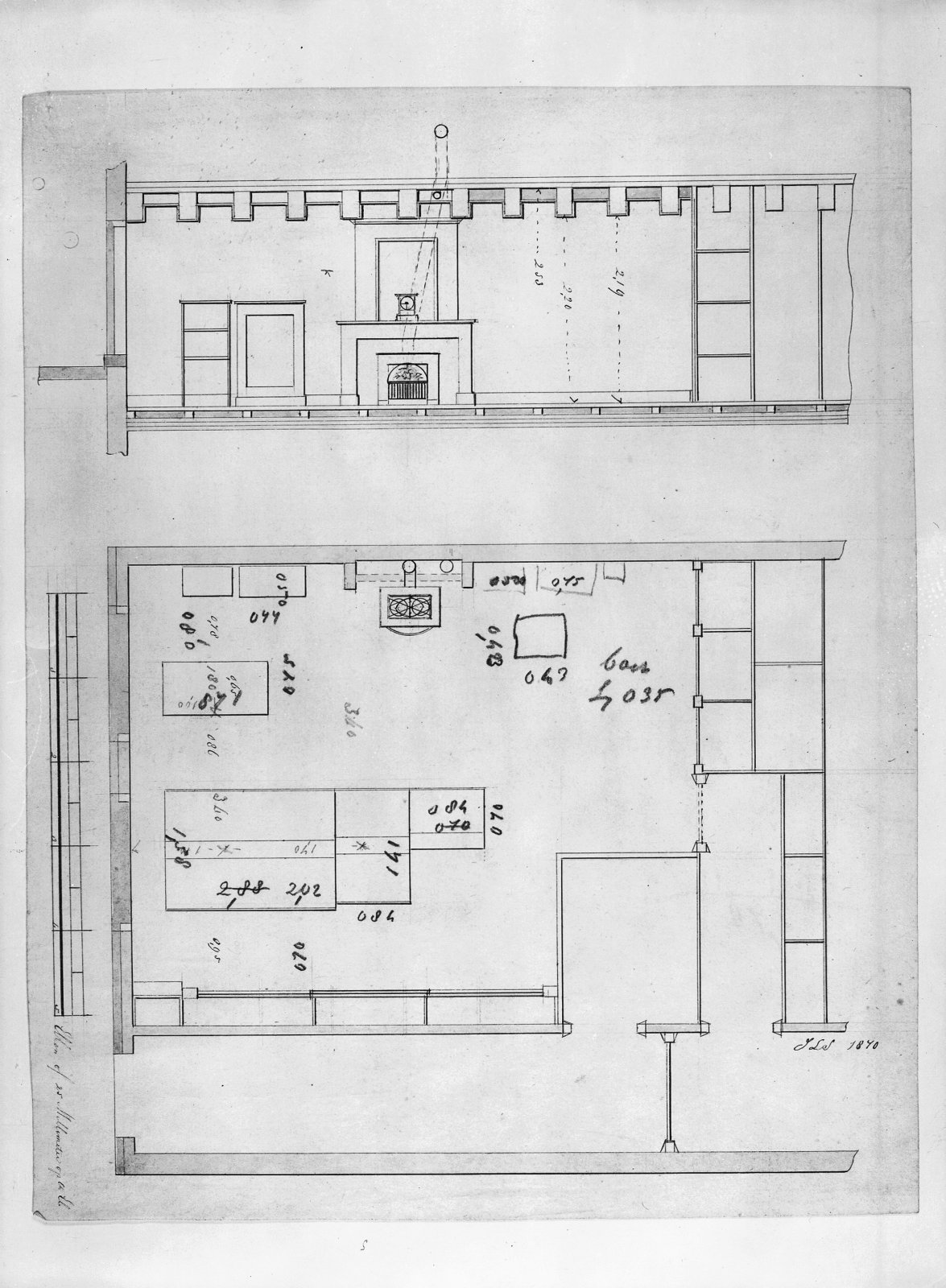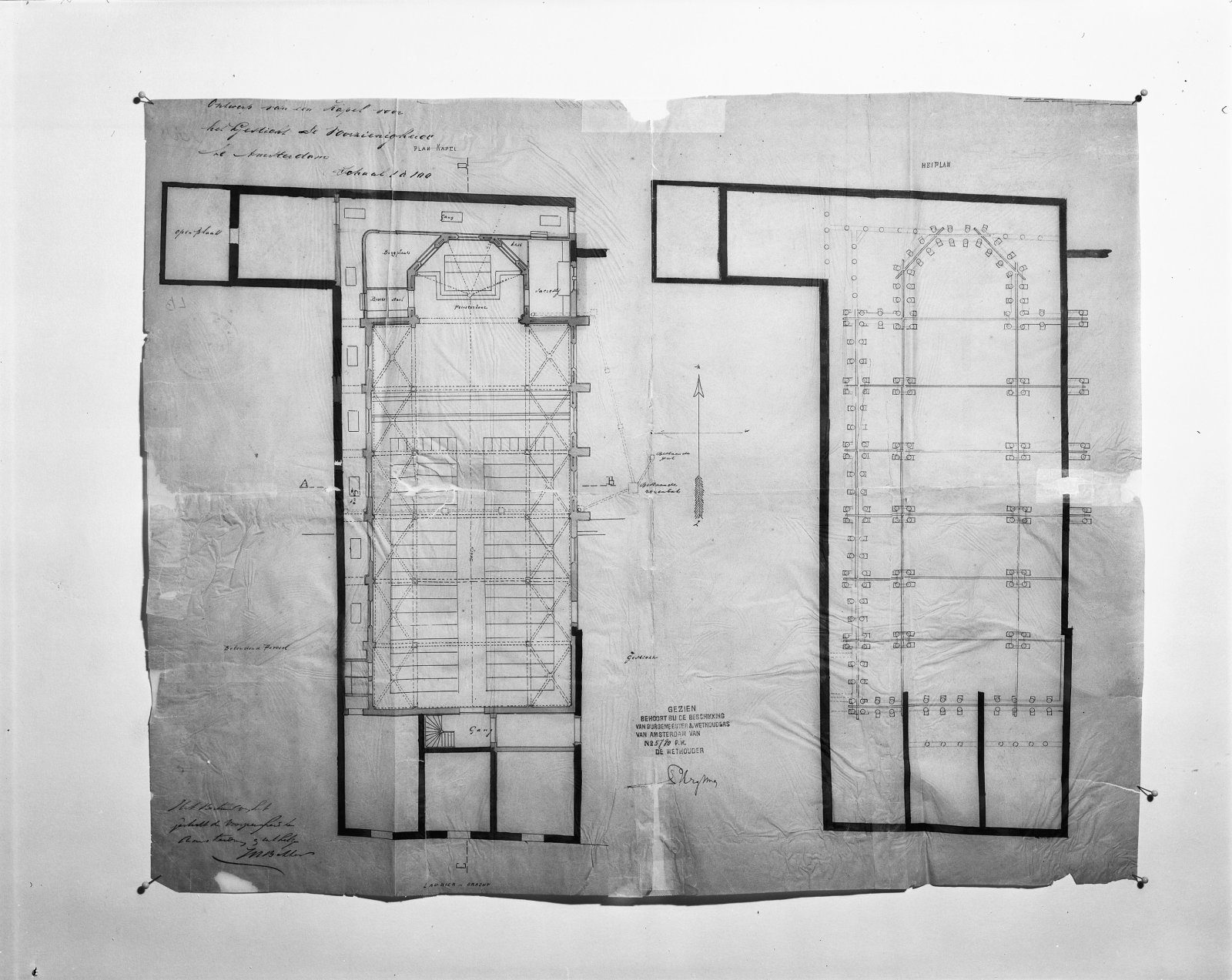 ontwerp tekening doorsnede naar kapel gezien. oudste...