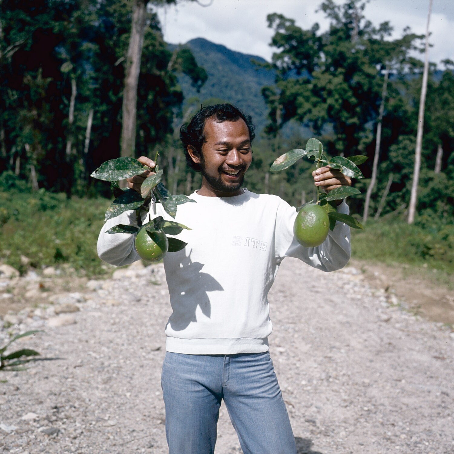Man met tak met wilde citroenen, omgeving Palu, Sula...