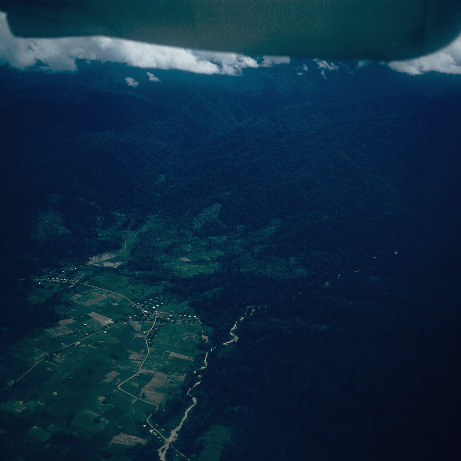 Luchtopname van Sulawesi, dorp met akkers temidden v...
