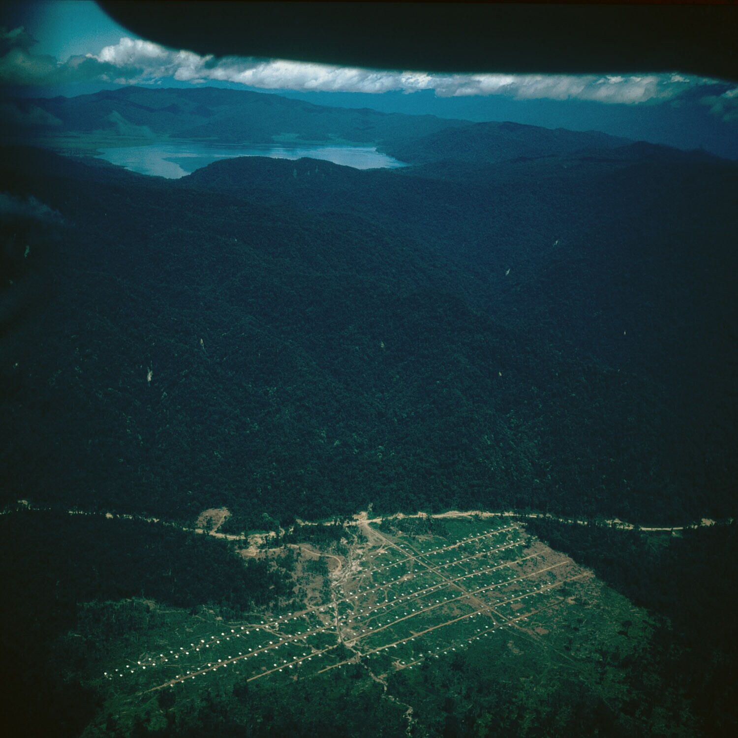 Luchtopname van remigratieproject in het regenwoud t...
