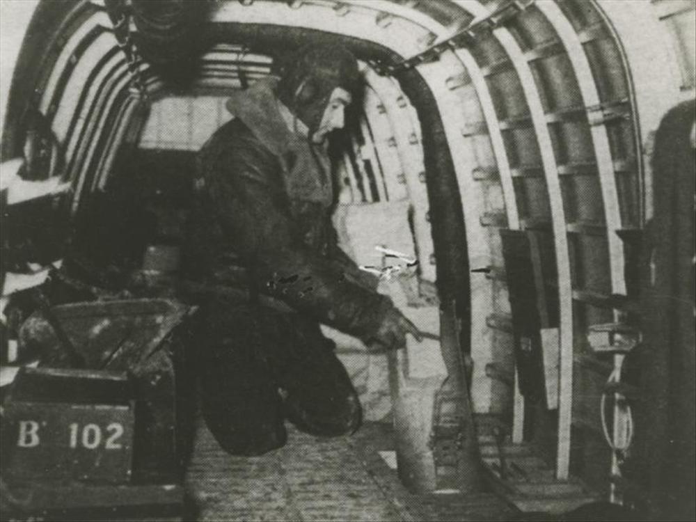 Foto van Britse vlieger die in een bommenwerper pamf...