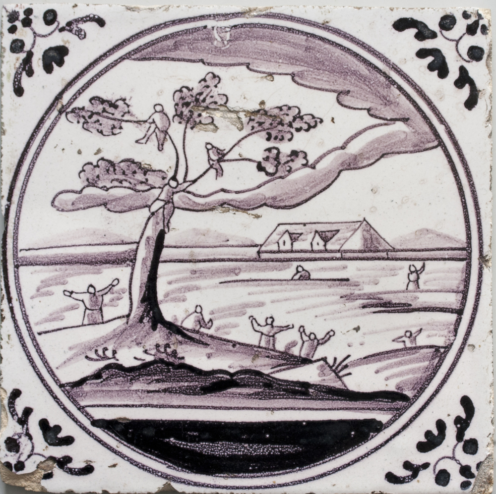 tegel van keramiek met tinglazuur, voorstellende: De...