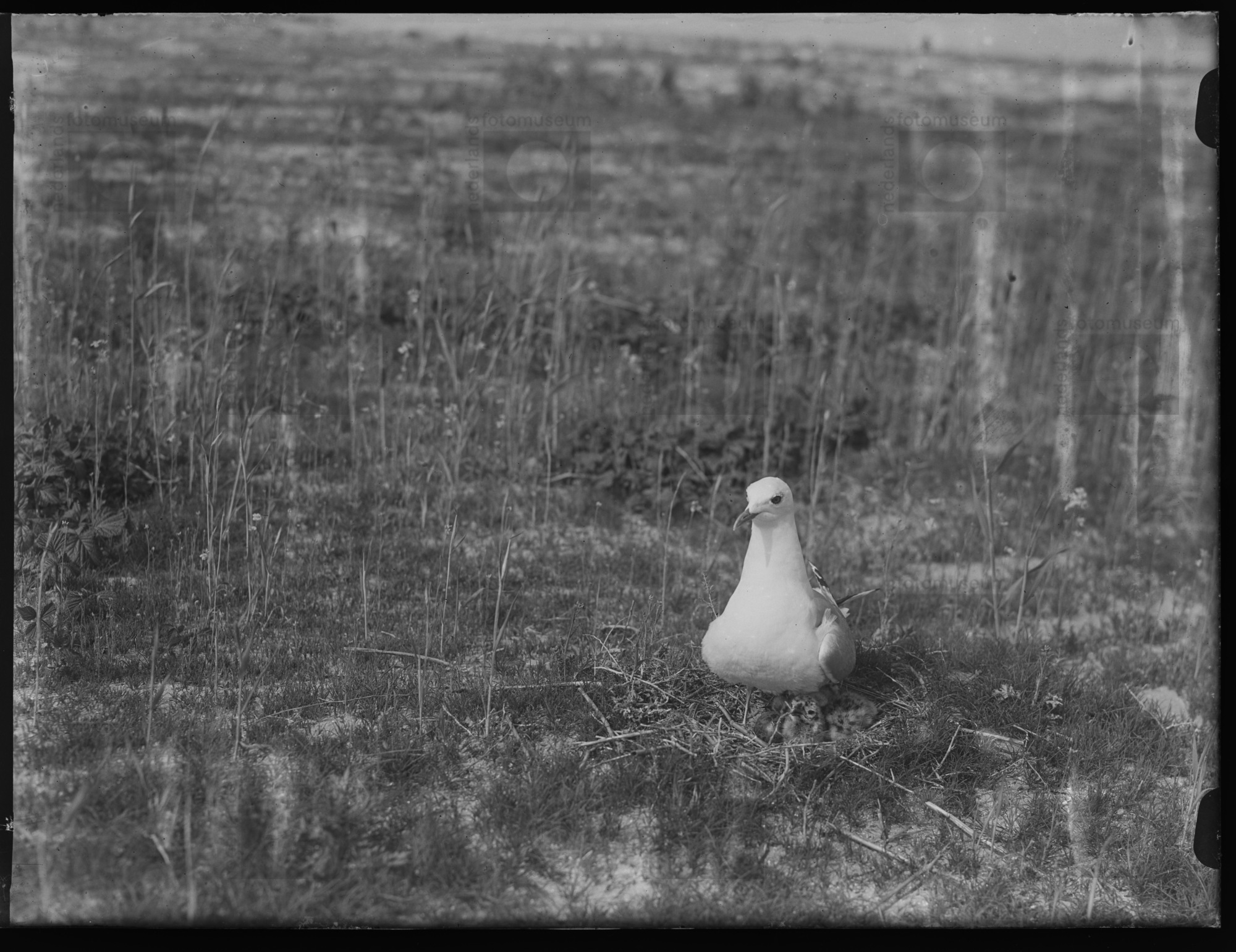 Stormmeeuw op nest met jongen, Geversduin (1949)
