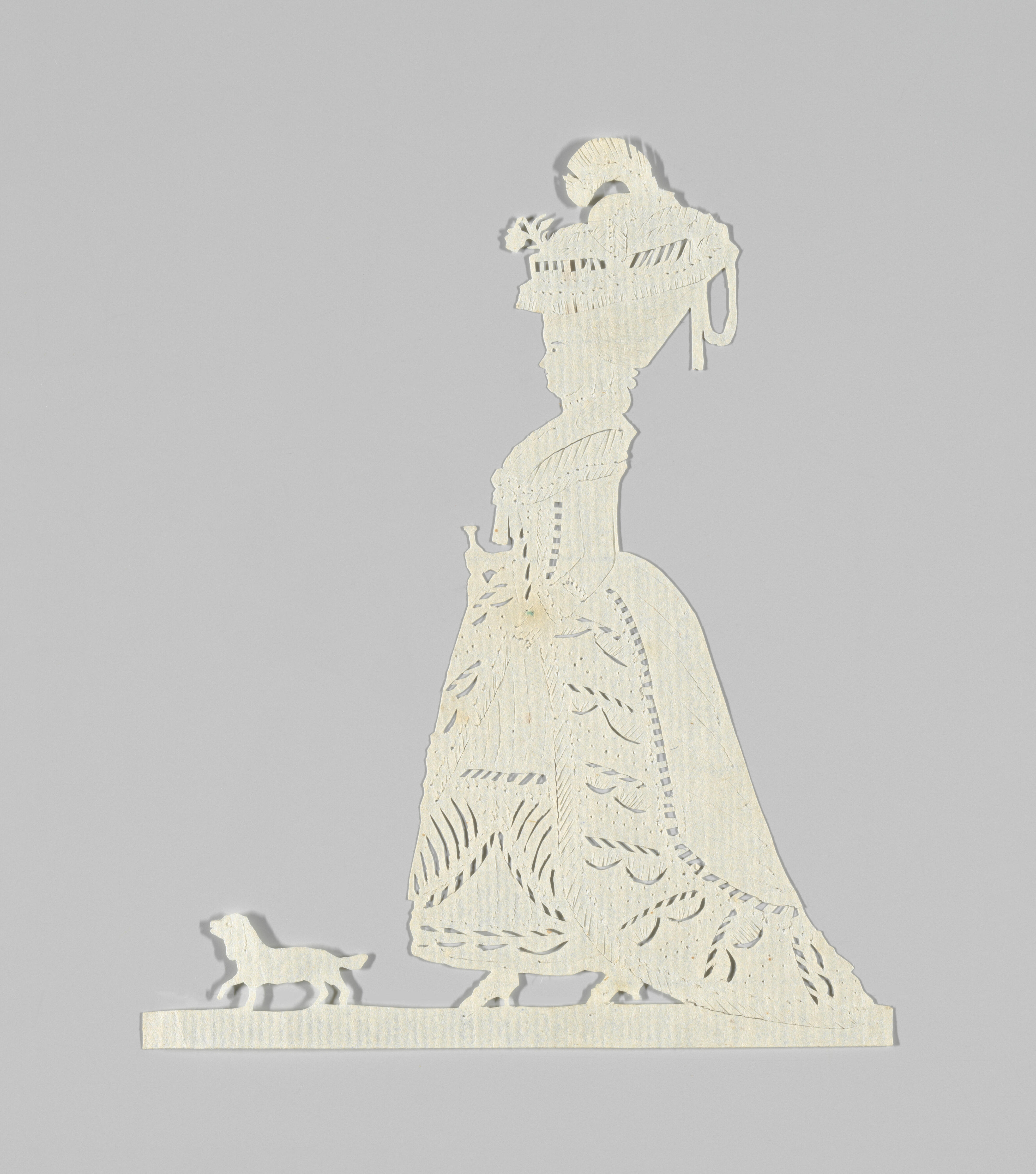 Knipsel van een vrouw met een hondje, 1750–1800