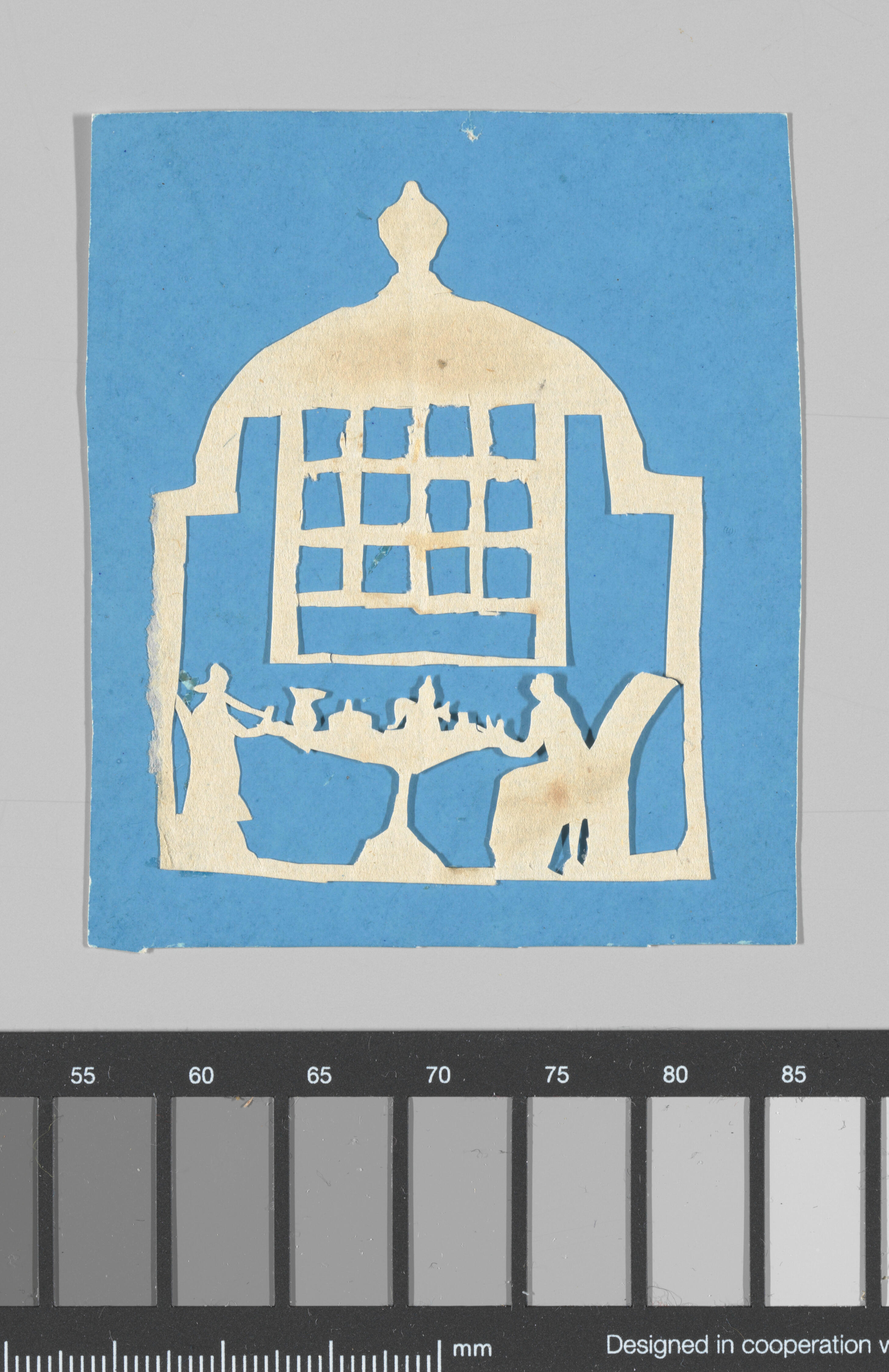 Knipsel van theekoepel met man en vrouw, 1850–1900