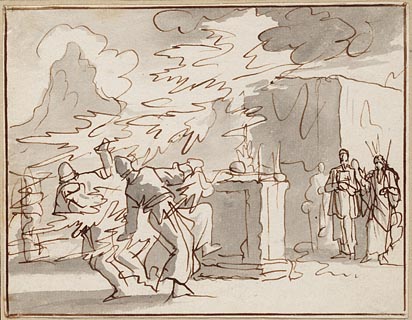 Nadab en Abihu bij het altaar gedood door hemels vuur