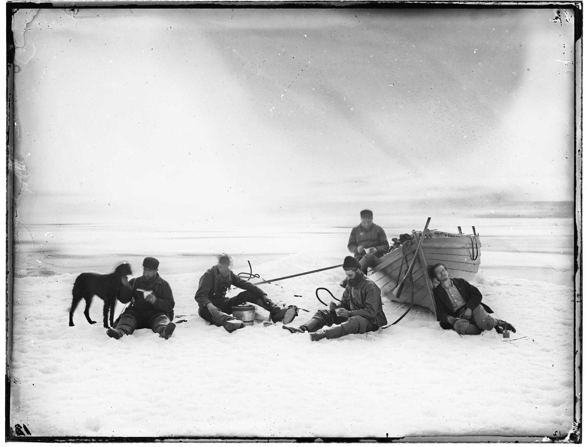 Boat party on ice floe off Flat Hook. N.W. coast Spi...